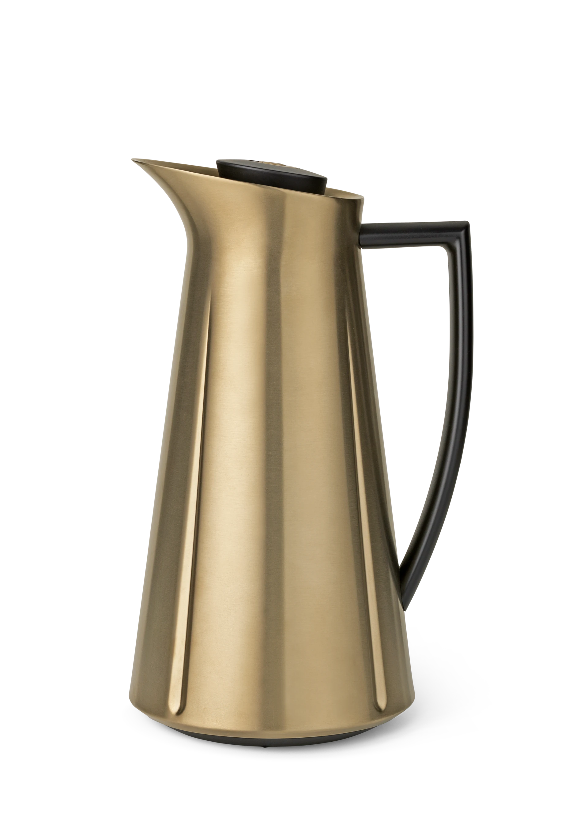 The classic Grand Cru thermos in a stylish design, made of golden toned steel.It is simple, elegant and robust. The practical push button function is designed so that the jug keeps the heat longer and because you do not have to unscrew the lid when pouring and thus you avoid letting cold air in. The thermos jug holds one liter, and therefore it fits well on the coffee table or as a supplement to the other thermo pitchers.