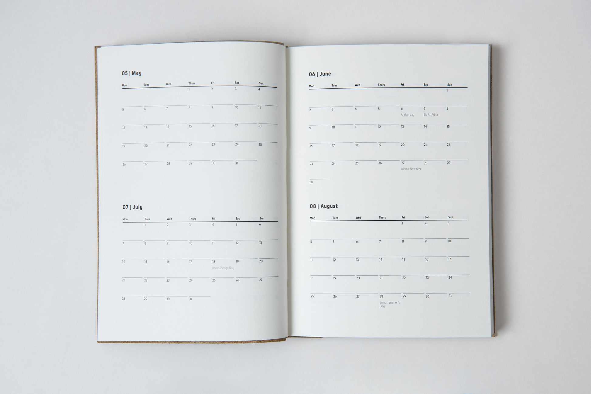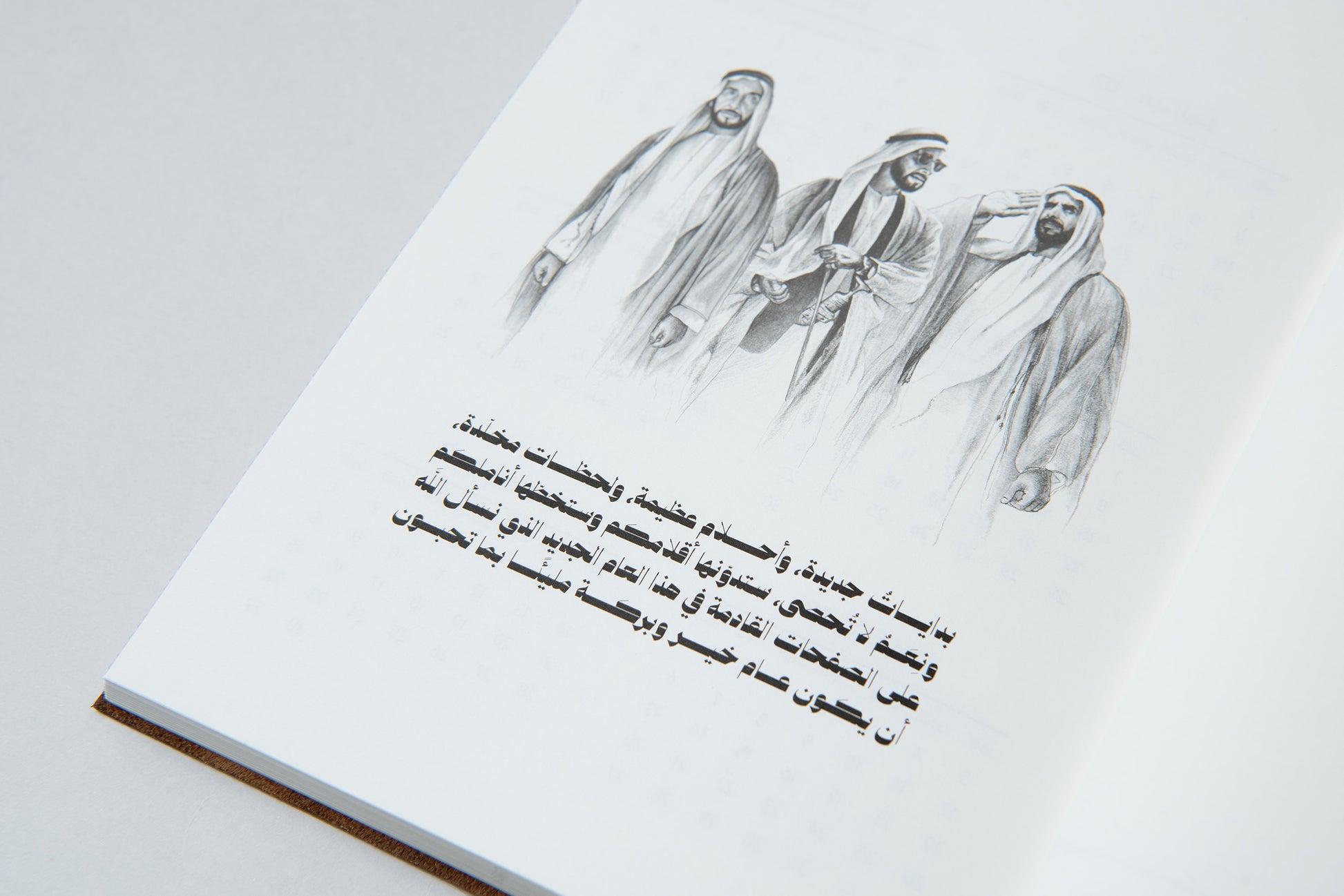Featuring yearly and undated daily sections, along with lined pages for notes, the planner offers flexibility and functionality. Throughout its pages, you’ll discover a curated selection of Sheikh Zayed’s inspiring poems and quotes, beautifully complemented by original artworks, making it a truly unique and meaningful companion.